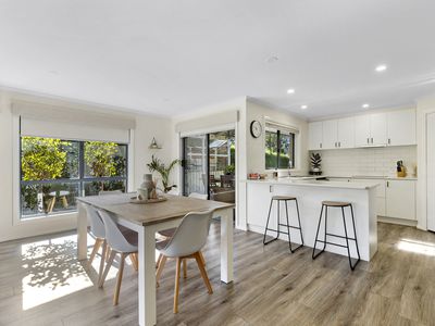 With a large light-filled open-plan living, dining and kitchen area including d/w and electric cook top.
