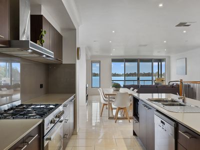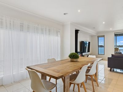 * Open plan dining and living area with wood fire & magnificent water views