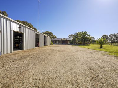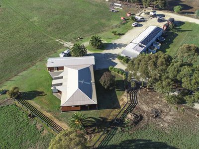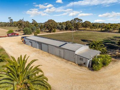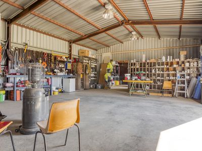 With separate 8m x 32m commercial style shed includes 3 phase electricity, 40 solar panels supply the 10kw solar system, a 6kva generator, a mechanics inspection pit, toilet, shower and an office with wood heater, split system and feeding three 22,500 water tanks.