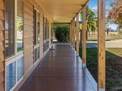 This four-bedroom homestead takes in a lovely northeast orientation, has full verandas surrounding, double glazed windows, four paddocks surround the expansive yard, sheds with concrete troughs and an enormous dam at the rear of the property.