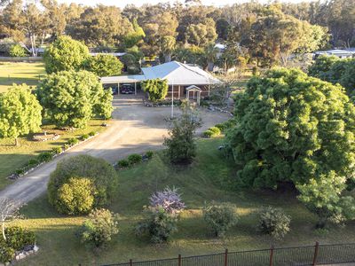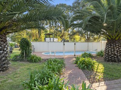 This beautiful property is situated on approximately 4753m2 block and only a stone's throw from the Goulburn River. The perfect family home featuring three bedrooms. Main bedroom with walk-through robe and ensuite, bedroom 2 & 3 with BIR's, open plan kitchen + dining area with beautiful slate floors, split living area with a wood heater. All year comfort with split system heating and cooling. Step outside to the decked undercover entertaining area and fully decked veranda all around the house. Inground pool surrounded by established landscaped gardens, and an ambience that cannot be bought.
