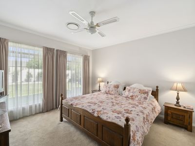 The master suite includes a sizable walk-in-robe and ensuite and is complemented by three further double bedrooms with BIRs and ceiling fans, a family bathroom and laundry with convenient external access.