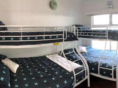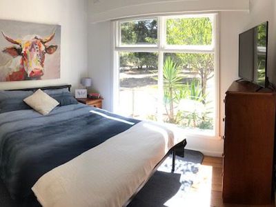 Three bedrooms all with ceiling fans and original timber floors, master-bedroom with BIR's.