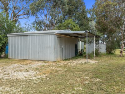 A large 9x7m shed, and stunning old mature gums to the rear of the property.