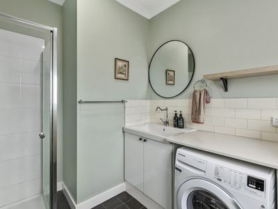 Two bathrooms, one with laundry facilities complete the picture here.