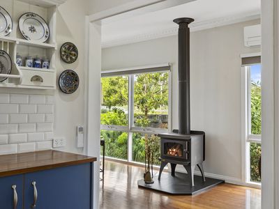 Heating and cooling are amply provided by 4 reverse cycle air conditioners and a slow combustion wood heater.