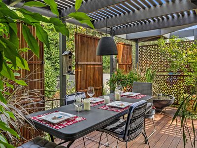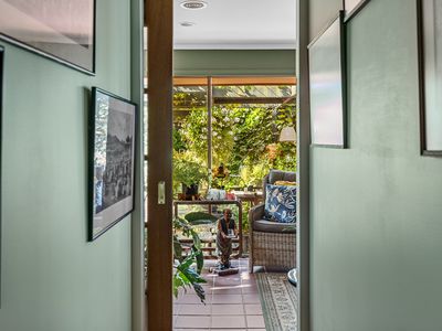 Once stepping onto the front tiled steps, you can appreciate the well-thought-out established garden offering a hideaway with screening and hedging, the fully fenced front yard featuring timber decking, water feature and greenery everywhere.