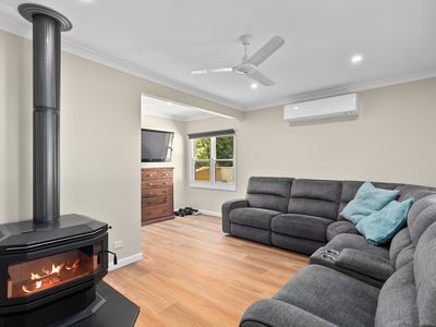 The kitchen has been upgraded with an abundance of storage and set to allow open plan living at its finest. Timber laminate flooring throughout adds a light and airy feel to allow an ease of living and entertaining family and friends. A spacious lounge with the perfect addition of a wood fire heater, just adding to all this property has to offer.