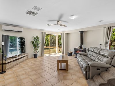 Comprising of 4 bedrooms, master with WIR & ensuite, large study/office, second living area, and large open-plan Kitchen, dining, and lounge area with wood-fire & split system. This lounge area is light & bright, and so spacious, a great area!