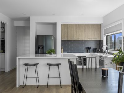 * Central kitchen with d/w, electric cook-top, large stone island bench, WIP