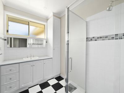 Master bedroom with split system, fan, BIR's and ensuite featuring large shower and spa bath. Bedroom 2 with BIR's + fan. Bedroom 3 extended to include either an office or multigenerational room/teenagers retreat with BIR's + fan. Main bathroom with shower and basin. Laundry with seperate toilet.