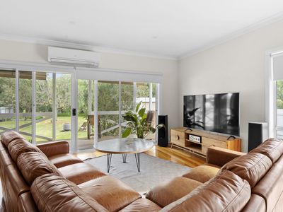 Offering an open plan living design, with timber flooring throughout and split system heating/cooling.