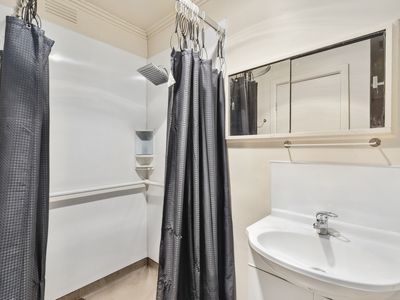 Boasting 3 large bedrooms, all with beautiful floorboards, big windows and loads of natural light. A central bathroom with double showers and a basin plus a large laundry space with plenty of room to accommodate.