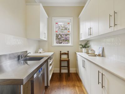 Inside the house the polished Tasmanian oak floors, leadlight windows and an open fireplace reflect a respect for period integrity which combines easily to provide classic appeal throughout.