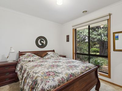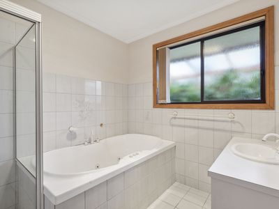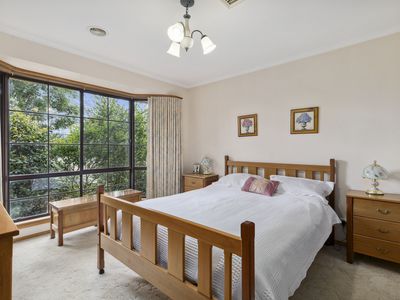 The master bedroom, located at the front, boasts a stunning bay window overlooking the gardens, along with a walk-in robe and ensuite. Three additional bedrooms, all bathed in natural light and equipped with built-in robes, offer ample space for family or guests.