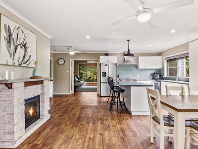 This beautifully renovated 3-bedroom home is set on a stunning 4-acre allotment, offering a blend of comfort and style. With generous living spaces, it provides a perfect setting for family living. The property features a welcoming entry and a charming sunroom that connects seamlessly to the dining area.