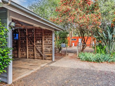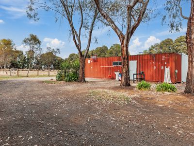 Step outside, and the property continues to impress with its functional features. It includes a 2 Meg S&D system, three separate paddocks with water troughs, all well-fenced and leading to a central laneway. Storage is taken care of with a small timber shed equipped with shelving, as well as a container used as a tack room. The container also houses a wash bay, complete with its own 3000L tank, pump, and electric hot water system—perfect for washing horses on chilly mornings. There’s also potential to add a stable and arena area with a little upgrade, making this property ideal for horse owners.