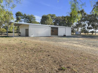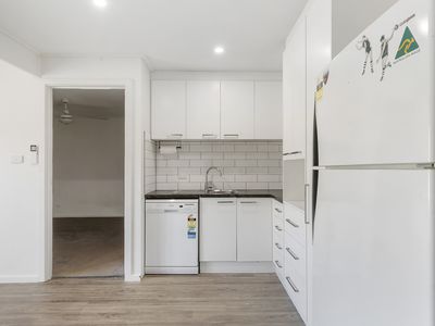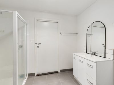 A substantial 25-meter shed is part of the offering, which includes a 1-bedroom, 1-bathroom unit, ideal for guests or weekend stays. The lounge area is designed for comfort with a split system installed for climate control, complemented by stylish floating floorboards that add warmth and modern appeal. The bedroom is carpeted for added coziness, while the bathroom is fully tiled, offering a sleek and low-maintenance space. The kitchen is well-appointed with cabinetry both above and below the bench, along with a dishwasher.
