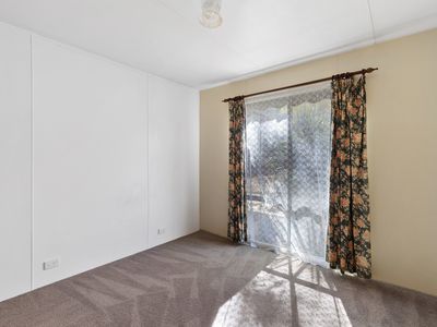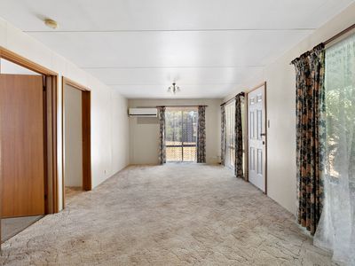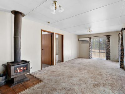 The 2-bedroom home with open-plan living offers a cozy and functional layout, with the wood-fire and split-system keeping things comfortable year-round. The kitchen’s ample storage makes meal prep and entertaining a breeze. Both bedrooms with built-in robes are a nice touch, and the separate laundry and bathroom offer convenience.