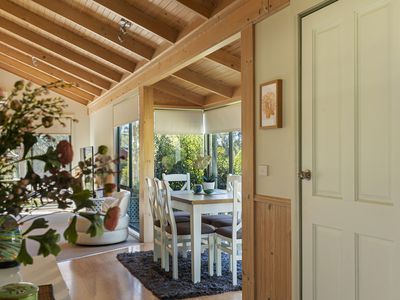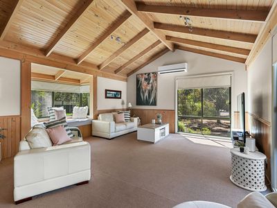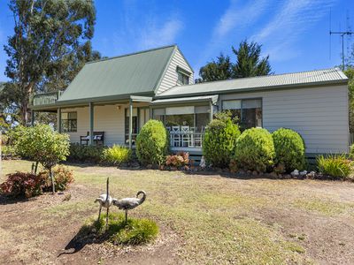Boasting three generous bedrooms and one well-appointed bathroom, this house is perfect for those seeking a spacious, private and inviting country retreat, or those looking to work from home. The open living area is flooded with natural light and timber-lined cathedral ceilings, creating a warm and inviting atmosphere for entertaining guests or simply relaxing with your family.