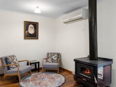 Boasting a coveted north-facing aspect, this home is bathed in natural light throughout the day, creating an inviting and warm atmosphere. As you step inside, you'll be greeted by beautifully polished floorboards that flow throughout the home, adding a touch of elegance to every room. The freshly renovated kitchen and bathroom bring contemporary style and convenience, ensuring every detail meets today’s high standards. The heart of the home – a spacious living room with a charming fireplace – offers the perfect space to relax, unwind, and create lasting memories.