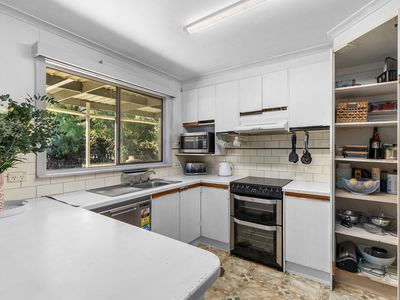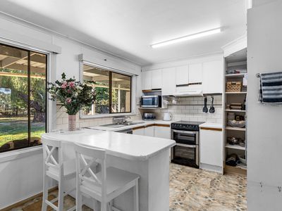 Open-plan kitchen and dining area flowing onto a generous back veranda