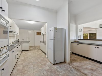 A well-equipped kitchen with abundant storage, generous bench space, a servery, and even a bar area for entertaining