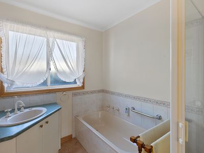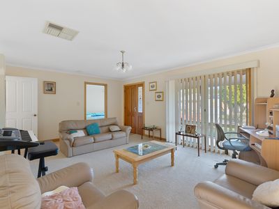 The master bedroom boasts a walk-in robe and private ensuite, while the two additional bedrooms are large in size and feature built-in robes (BIRs). The central bathroom includes all the modern conveniences, catering perfectly to family needs.
