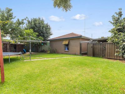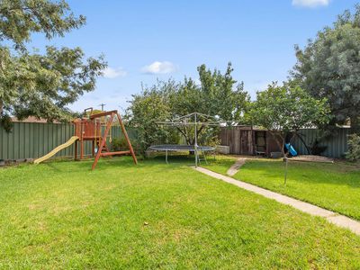 Large backyard with garden shed—plenty of room for kids or pets to play