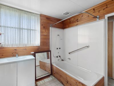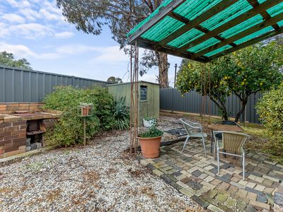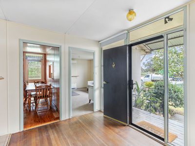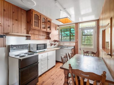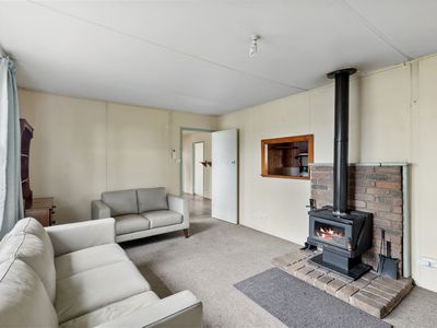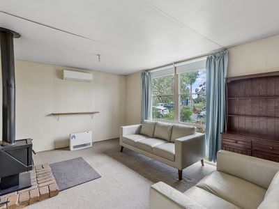 Featuring a spacious lounge with split system heating/cooling and a cosy wood fire, the home offers year-round comfort. The kitchen, complete with electric cooktop, opens to a side outdoor entertaining area—ideal for enjoying the morning sun.