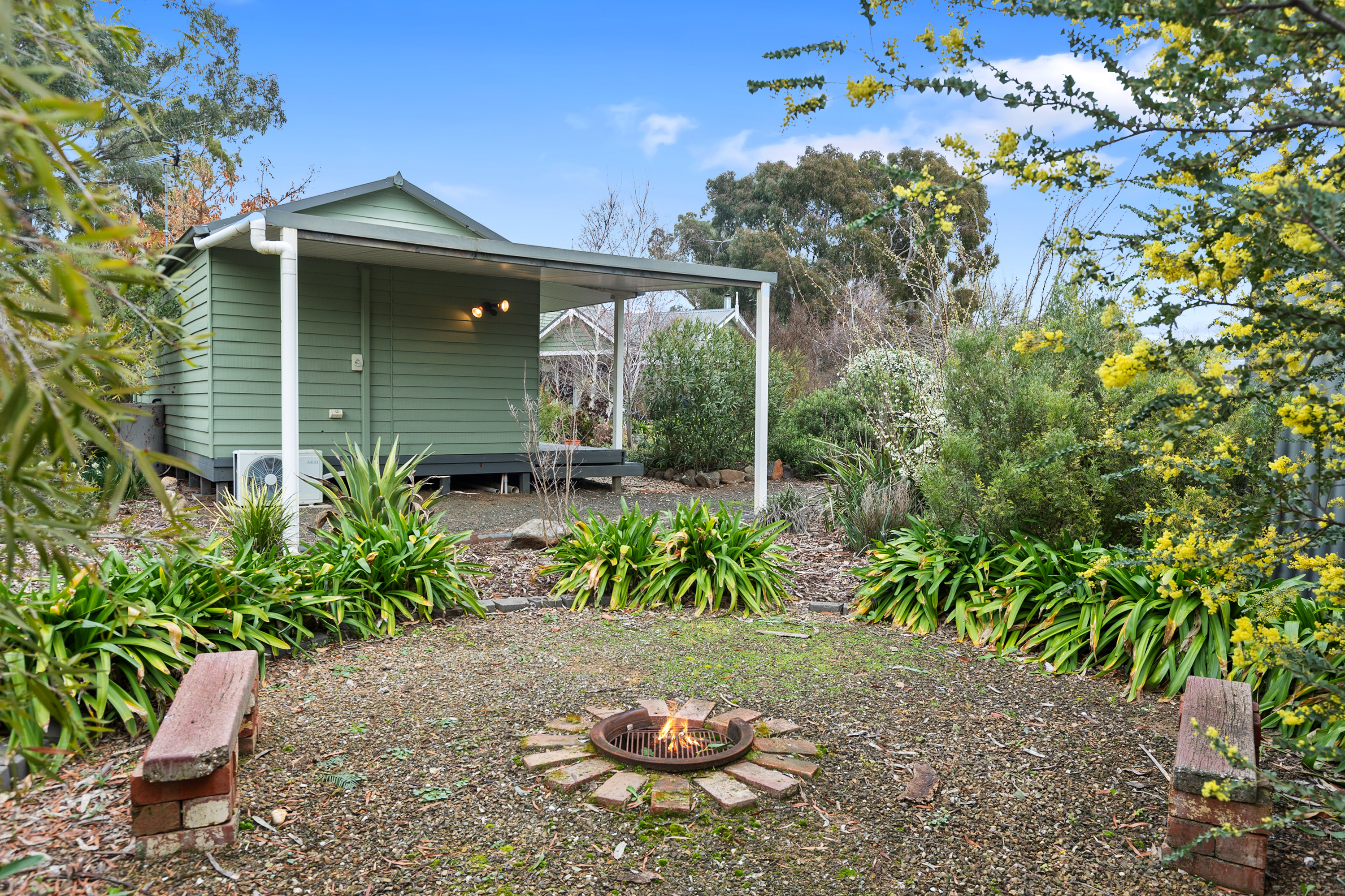 The magic continues outdoors, with beautifully landscaped grounds offering multiple sitting areas, a fire pit for evenings under the stars, and impressive shedding: