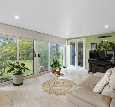 A separate lounge/sunroom captures sweeping garden views, creating the perfect space to relax with a book or host guests.