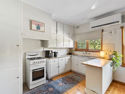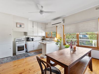 A real standout is the wrap-around deck, perfect for relaxing or entertaining, while inside you’ll love the polished timber floors and spacious living. The master bedroom is a highlight, featuring a cosy wood-fire and split system. Two additional good-sized bedrooms are serviced by a central bathroom, while the open-plan kitchen and meals area creates the heart of the home. A separate laundry and toilet add convenience.