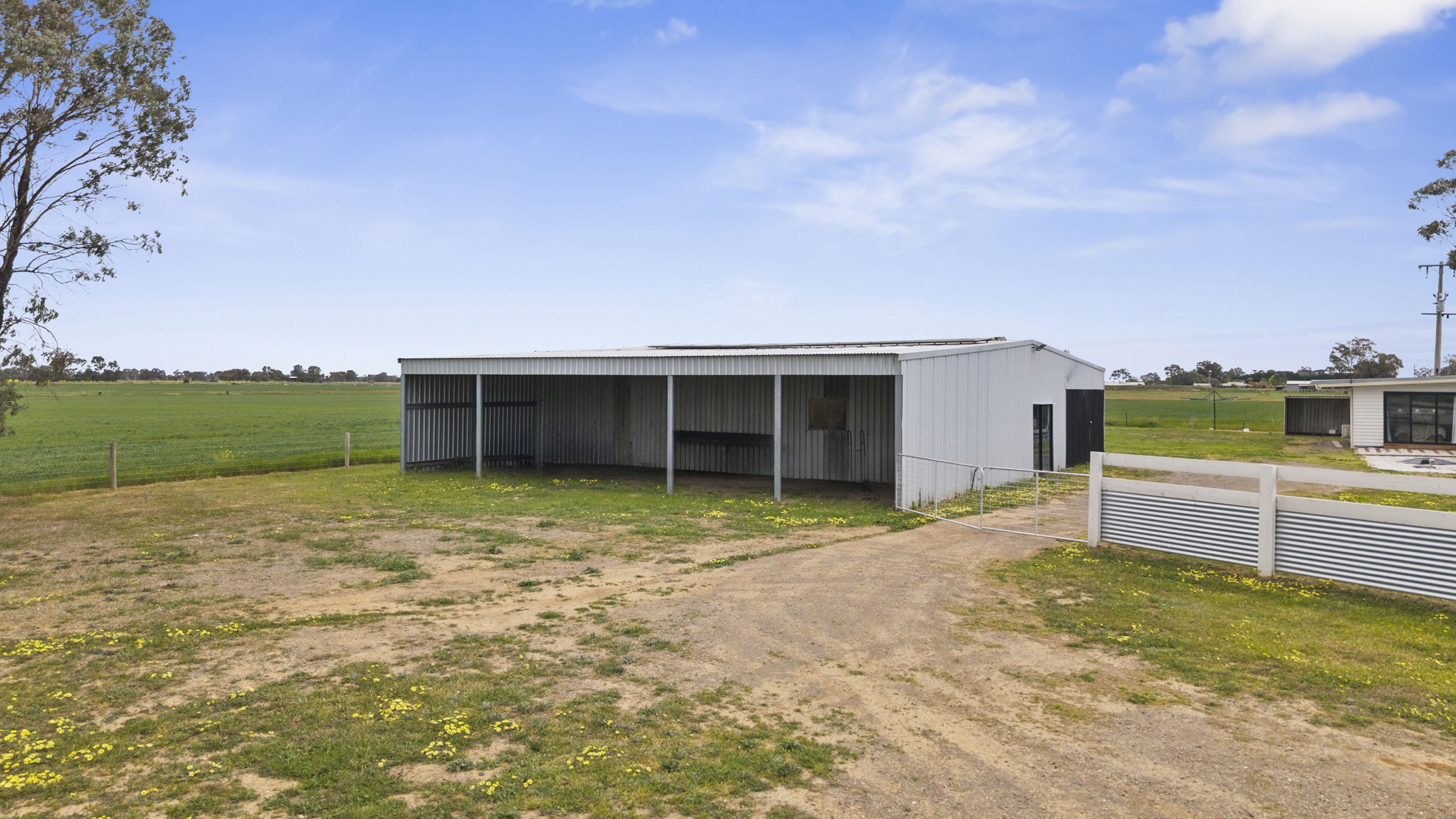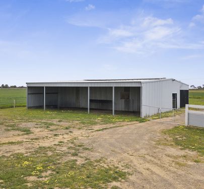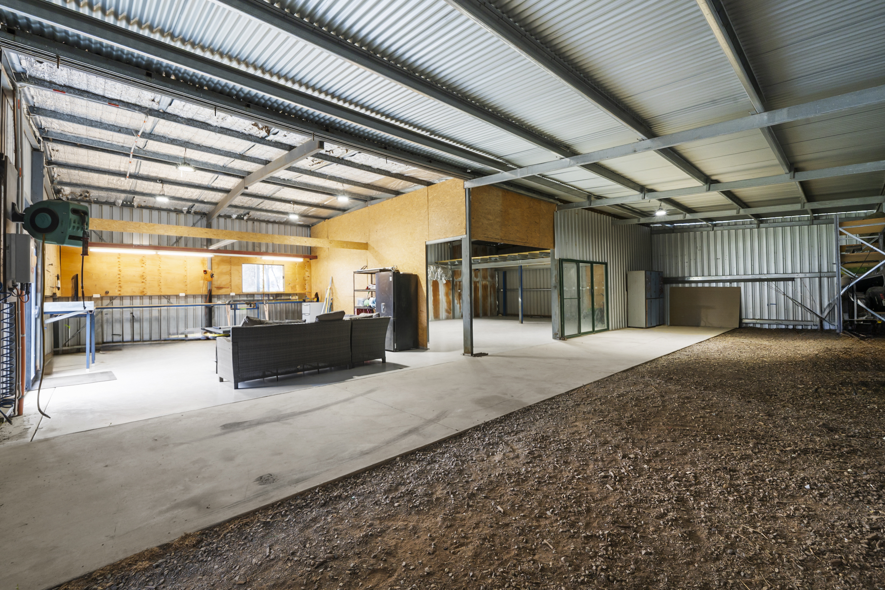 • Large steel-framed shed – mostly concreted, small gravelled area