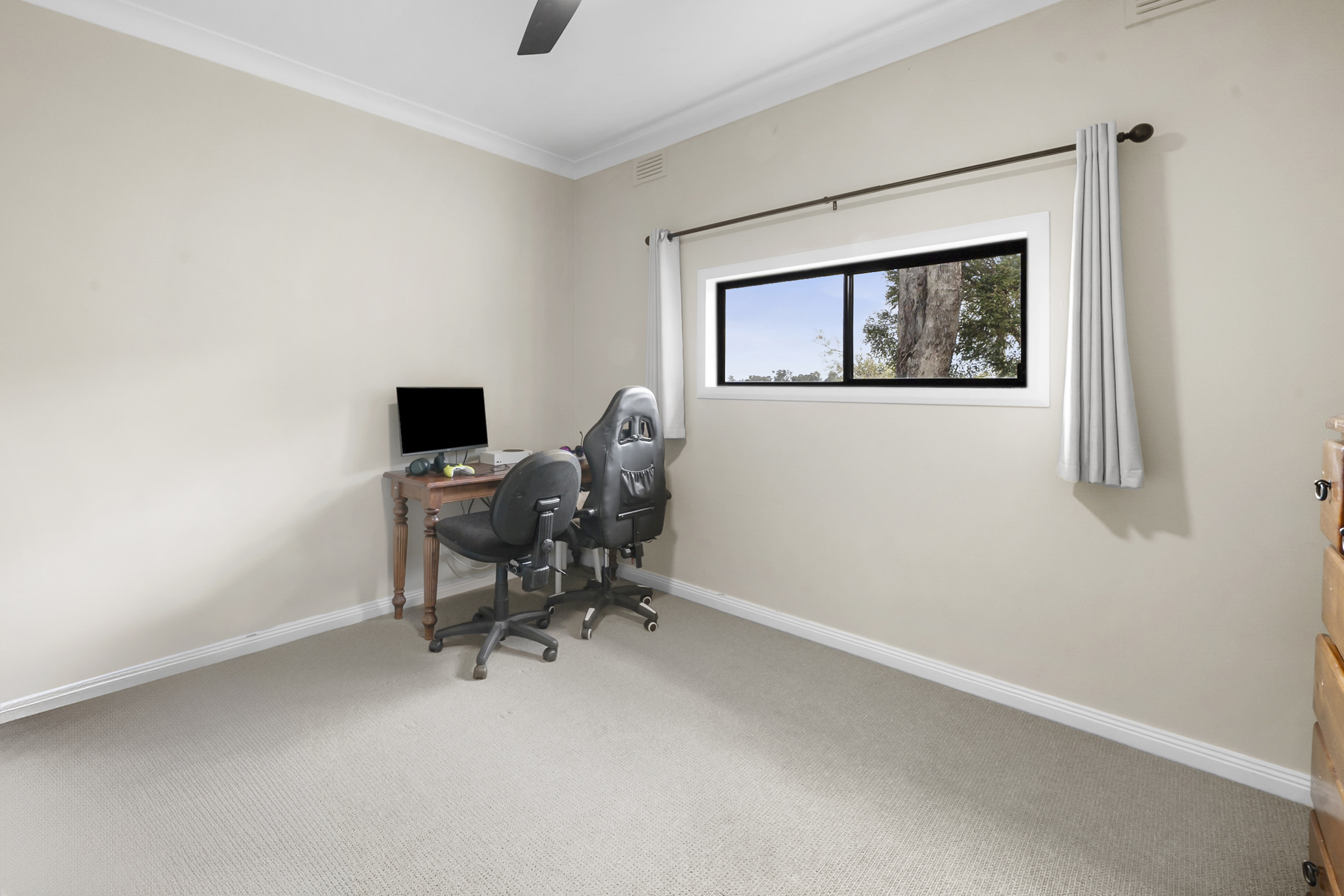 • Bedroom 2: Carpet, fan, bright and spacious