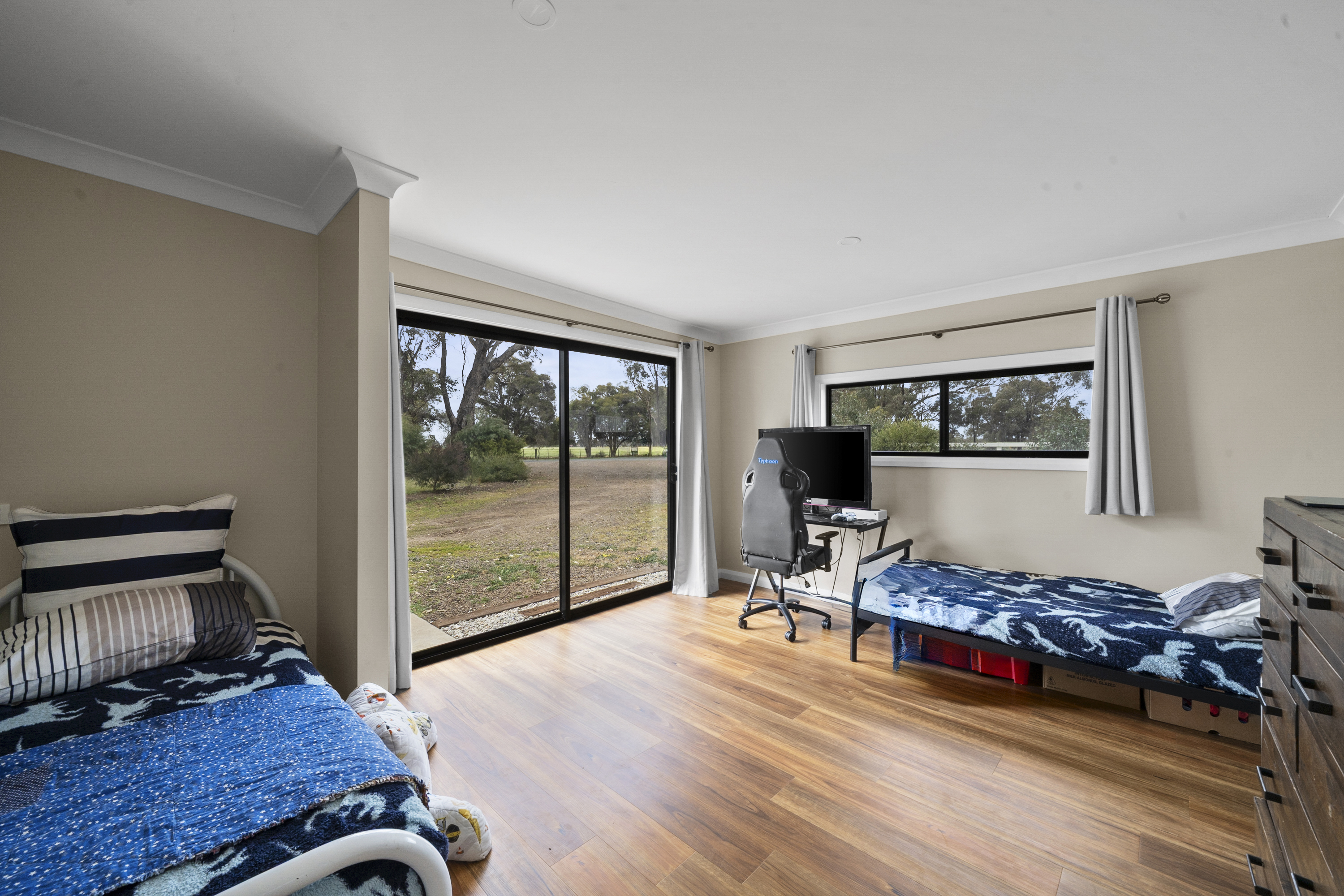 • Bedroom 4 / Huge Home Office: Floorboards, sliding doors to outside, side feature window – perfect as a guest room or workspace