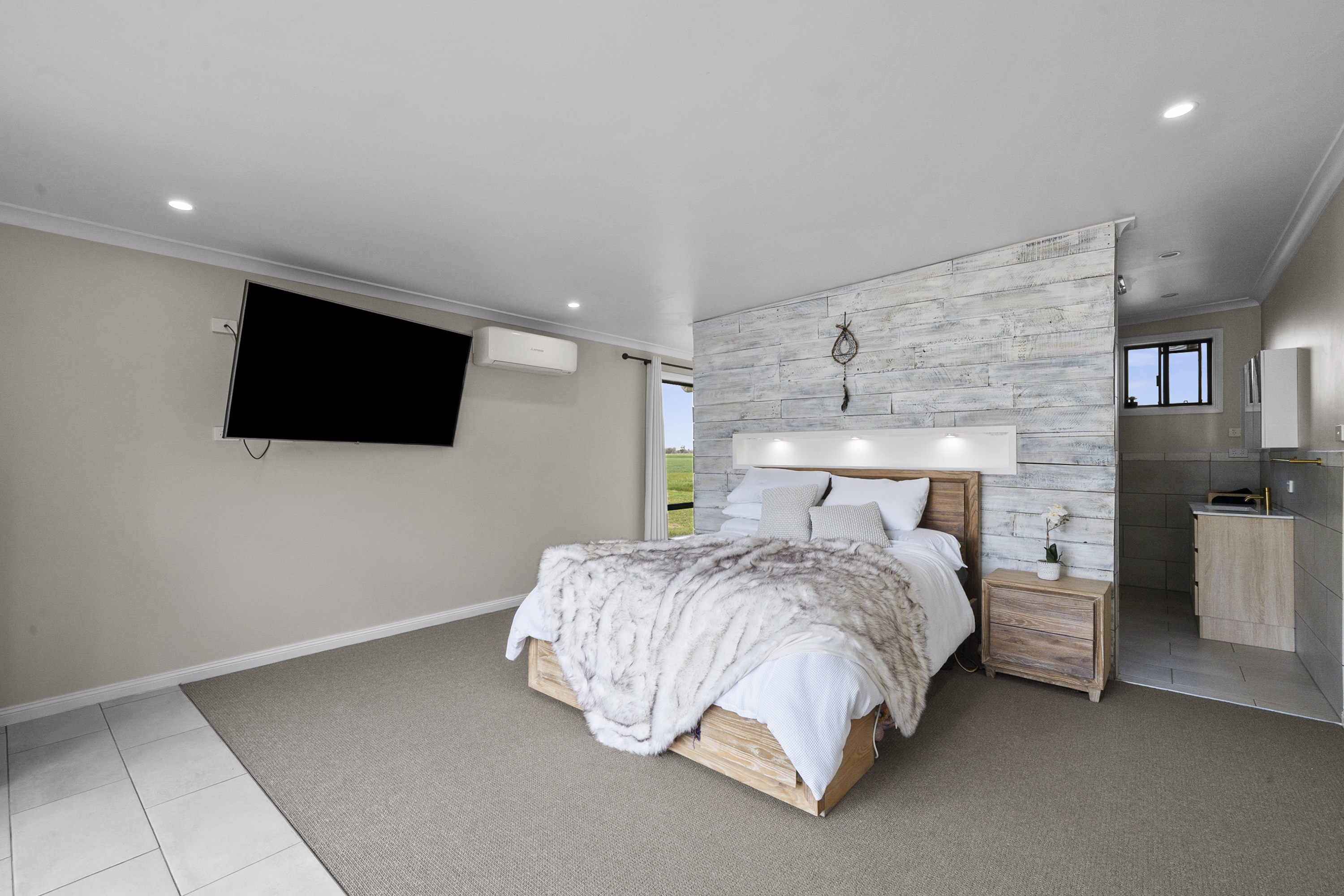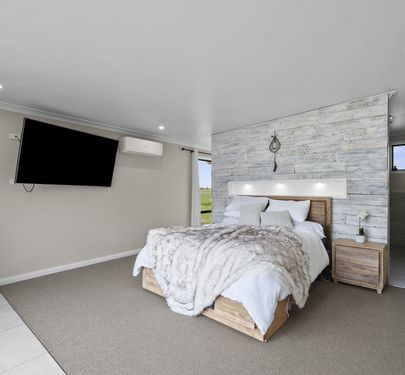 • Master bedroom with unique partition wall, double door access to outdoors, split system, ensuite (shower, toilet, vanity) and walk-in robe (to be completed at buyer’s discretion)