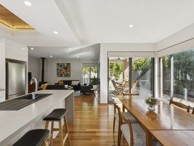 Open-plan dining and lounge flowing to an undercover alfresco terrace