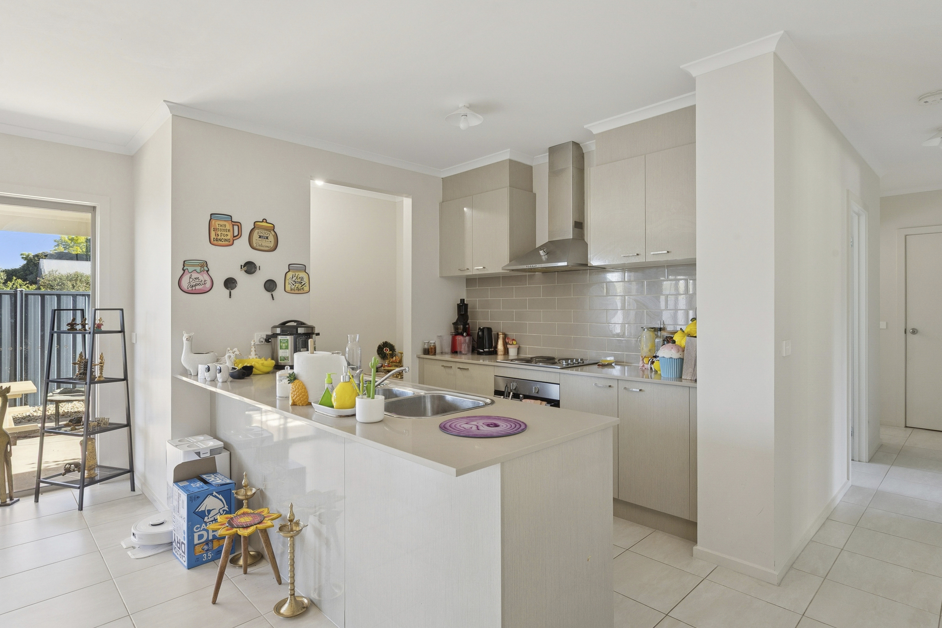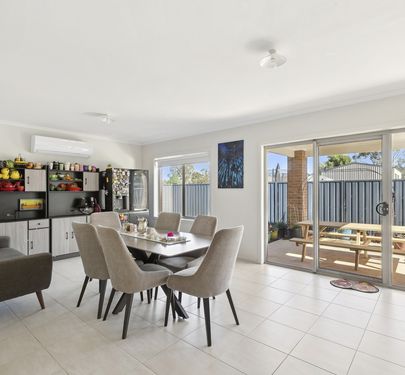 The bright open-plan living, dining, and kitchen area creates seamless flow throughout the home — ideal for both everyday living and entertaining.
