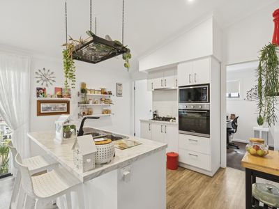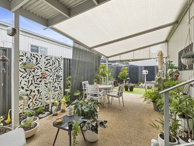 Enjoy low-maintenance living at its finest with an easy-care rear courtyard, small garden shed, and beautifully established front gardens. A single remote-operated carport and a shaded outdoor entertaining area provide effortless convenience.