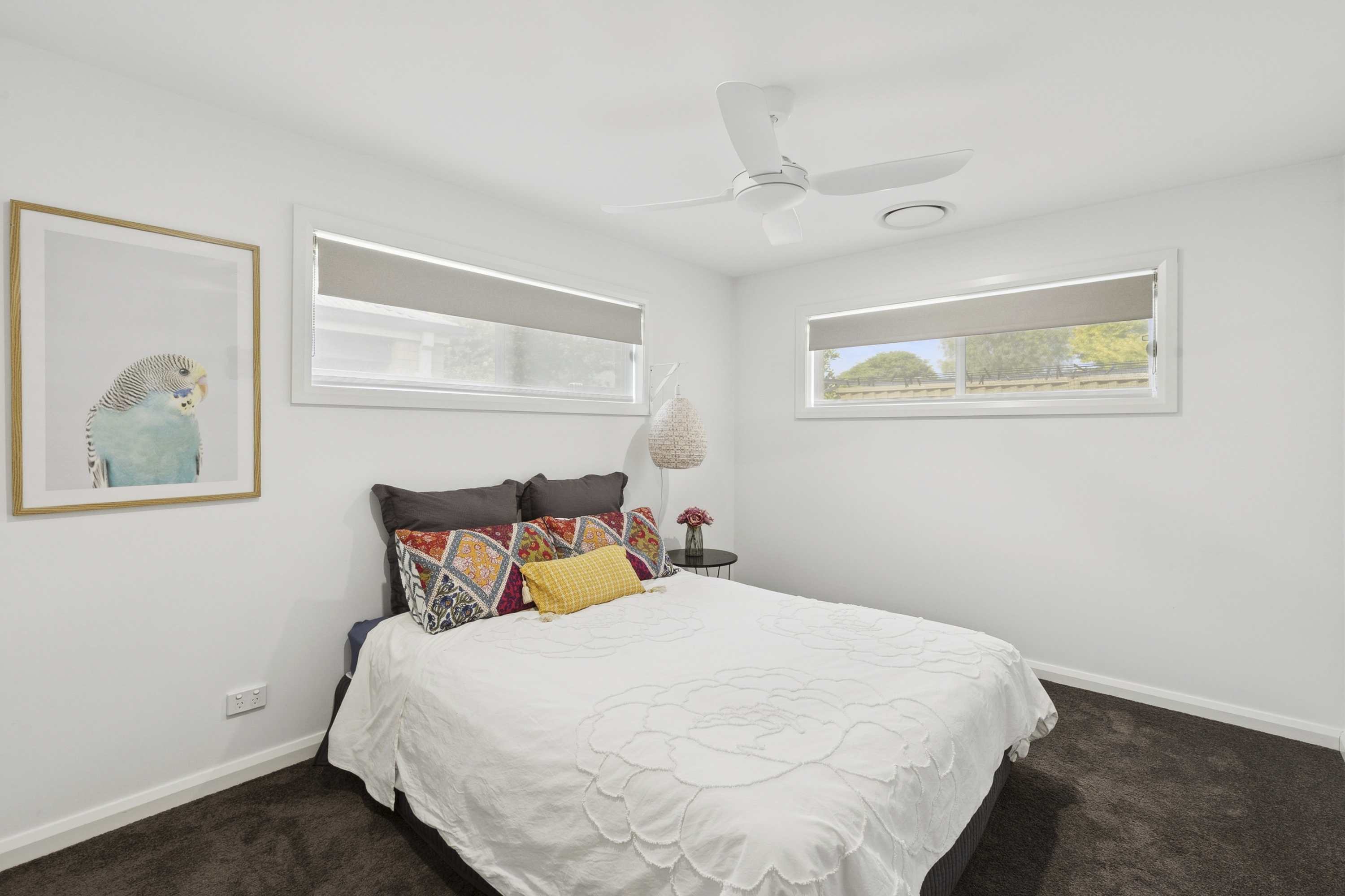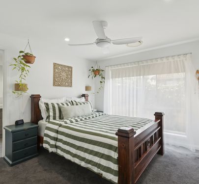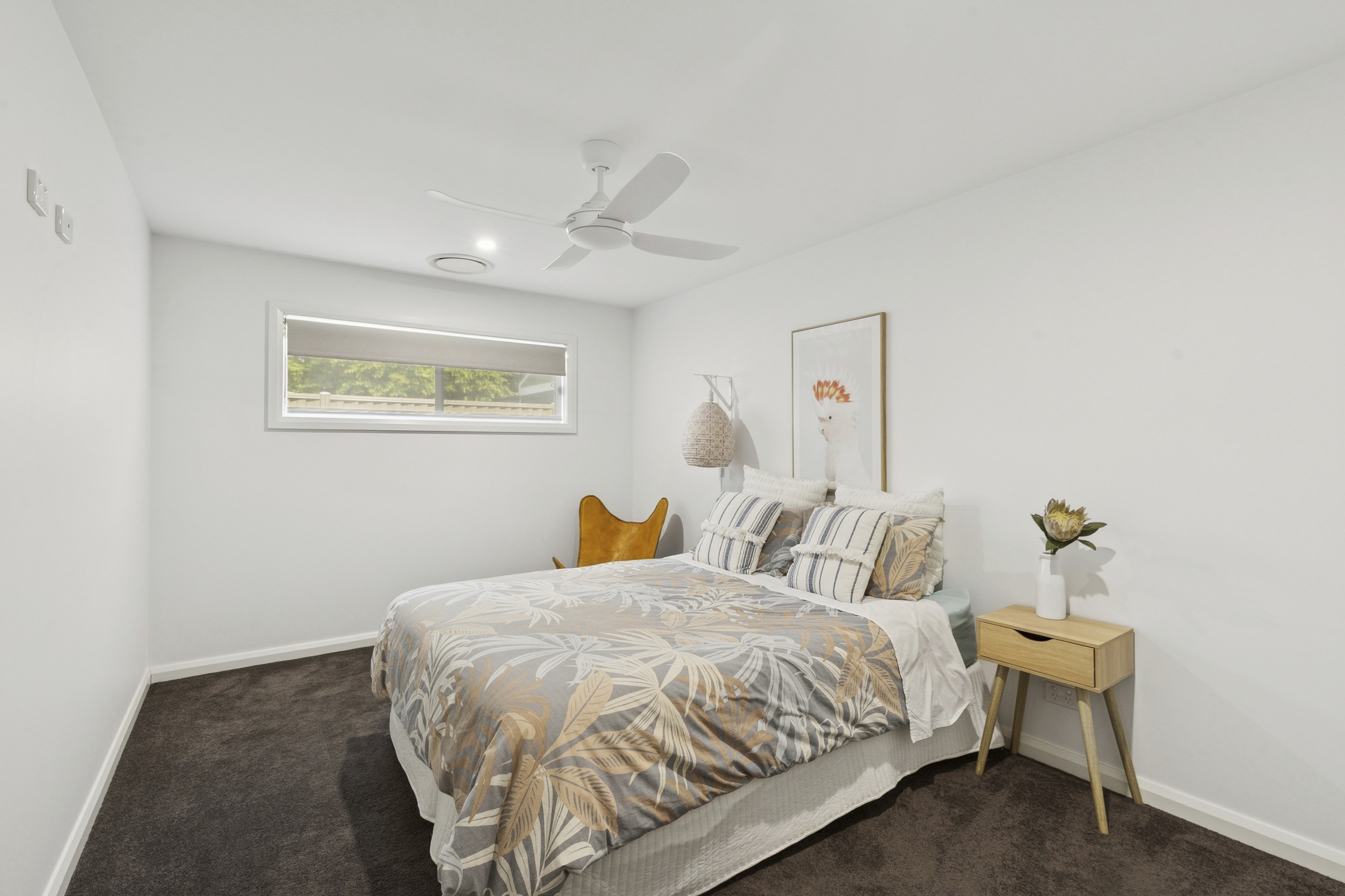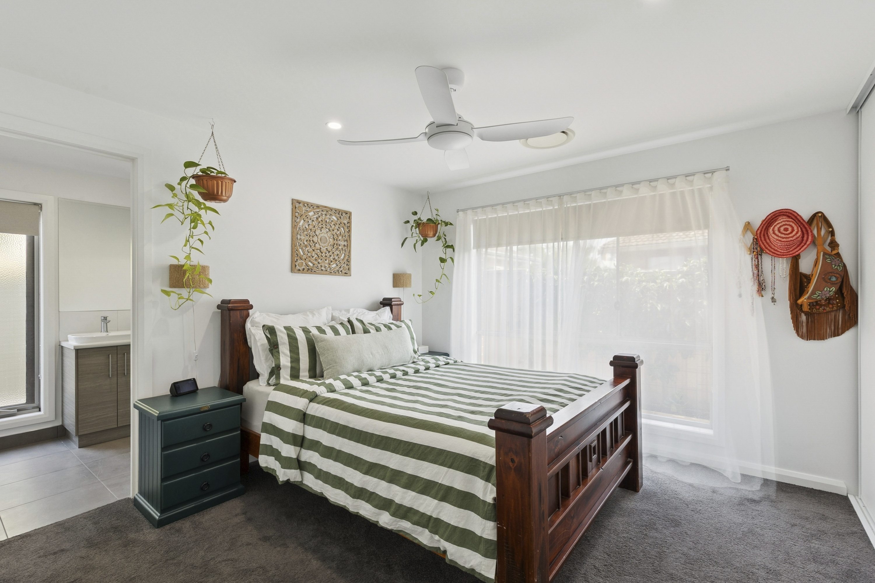 Behind its sleek, low-maintenance façade, the home opens to a light-filled and generously proportioned interior. The master bedroom is well-appointed with a built-in robe, ceiling fan, and private ensuite, while two additional bedrooms are equally generous in size, each featuring built-in robes and ceiling fans.