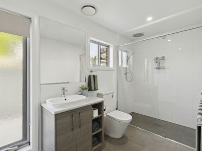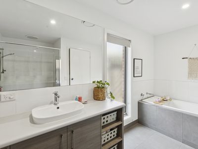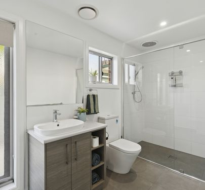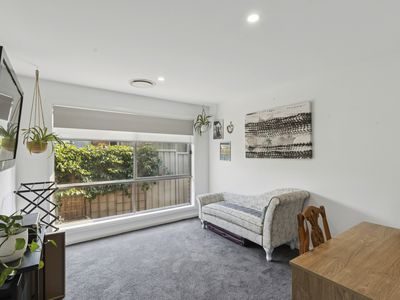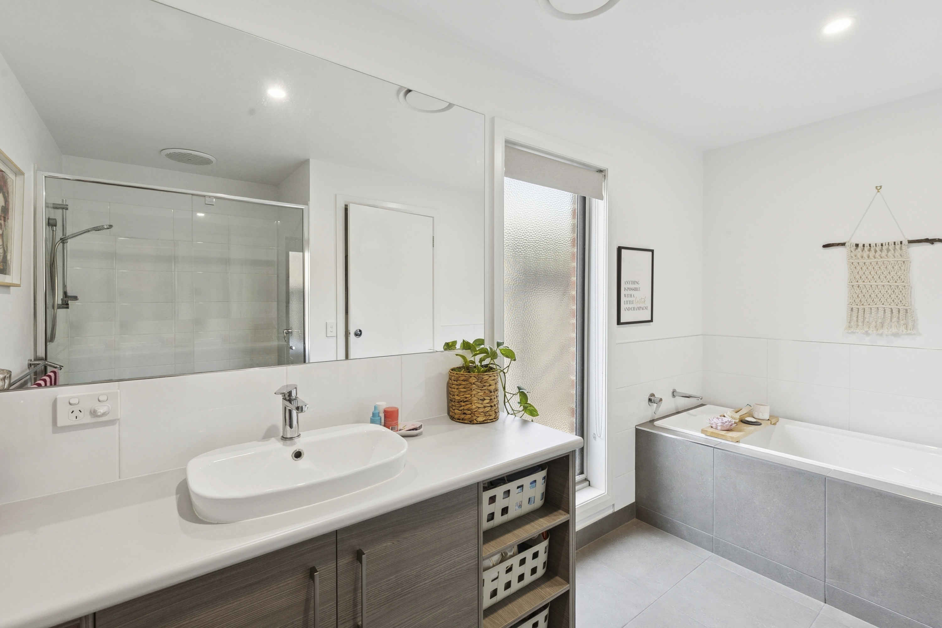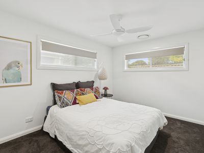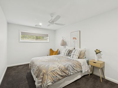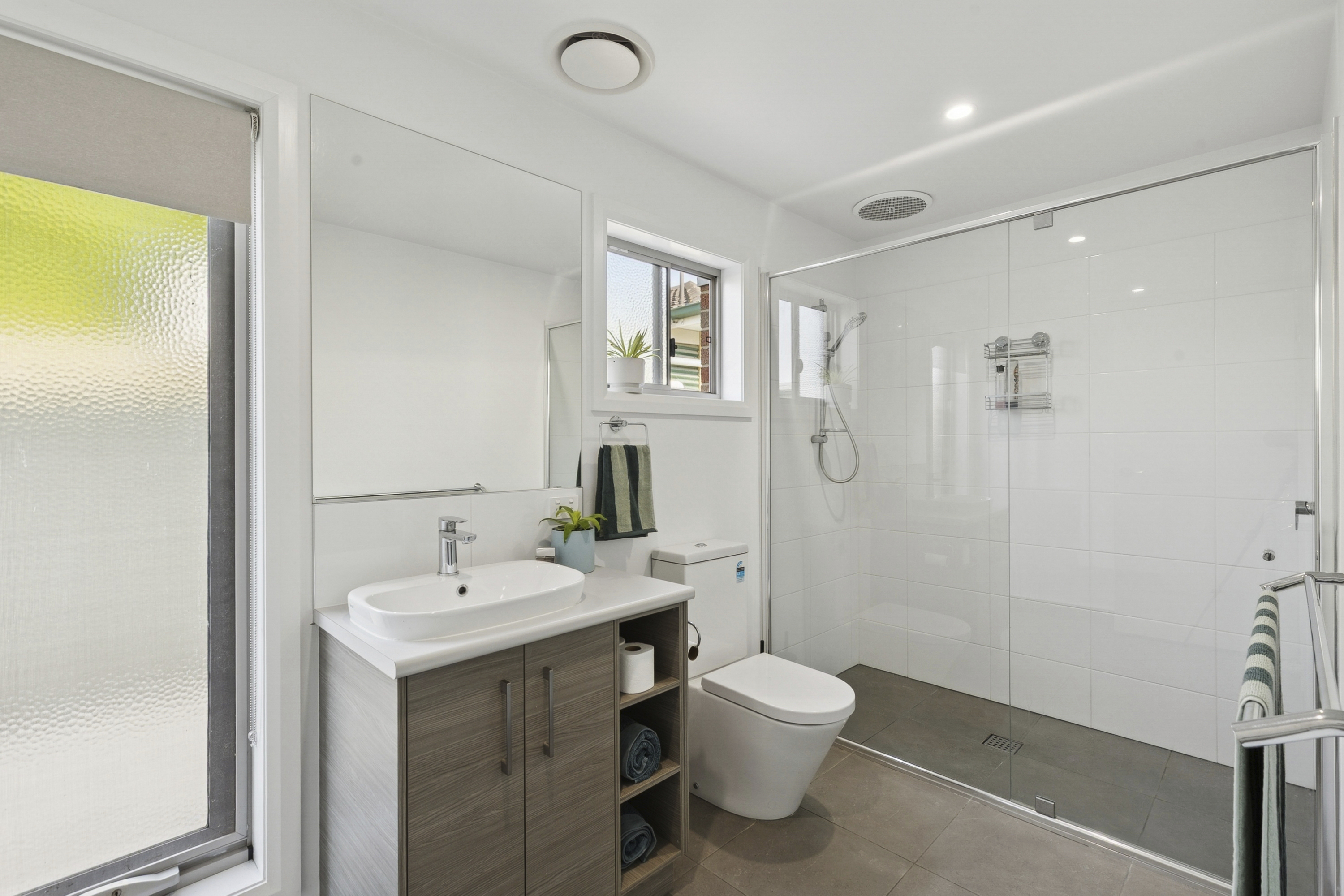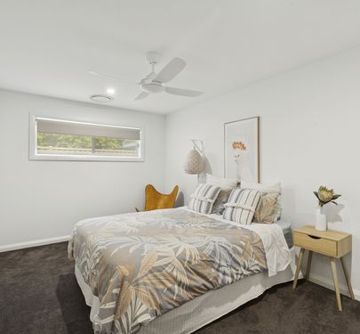 Behind its sleek, low-maintenance façade, the home opens to a light-filled and generously proportioned interior. The master bedroom is well-appointed with a built-in robe, ceiling fan, and private ensuite, while two additional bedrooms are equally generous in size, each featuring built-in robes and ceiling fans.
