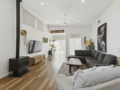 Further enhancing the home’s versatility is a second living area or potential fourth bedroom, along with a generous laundry featuring ample bench space and storage. The main bathroom is thoughtfully designed with a large shower and separate bath.
