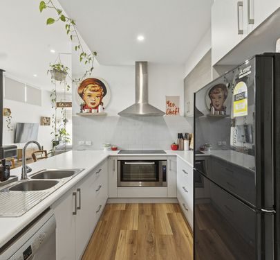 Completing the package is a neatly maintained, low-maintenance front yard and a double garage with additional storage, offering direct internal access to the kitchen for everyday convenience.