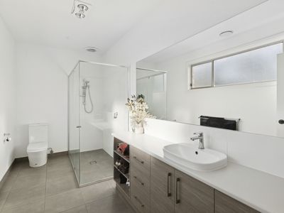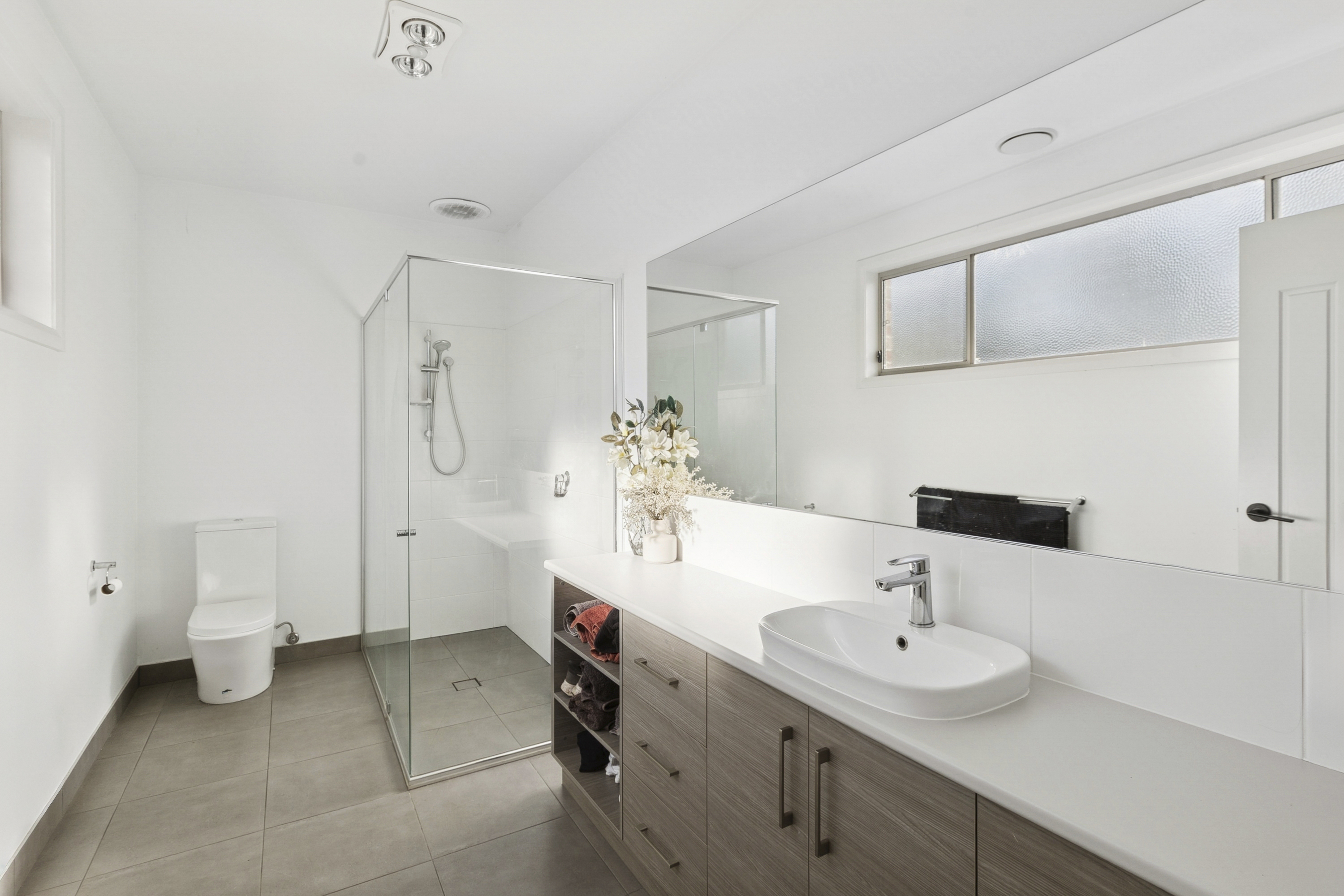The expansive master bedroom is beautifully appointed, complete with double built-in robes, a large private ensuite, and sliding doors opening directly to the outdoor area. Two additional bedrooms are equally generous in size, each fitted with built-in robes and offering comfortable accommodation for family or guests.