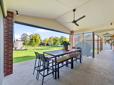 Set on a huge fully fenced block, the property provides plenty of outdoor space along with established gardens and a spacious undercover outdoor entertaining area complete with ceiling fan and outdoor blinds—perfect for enjoying the outdoors in all seasons.
