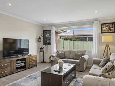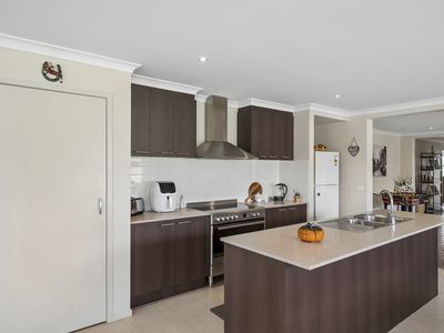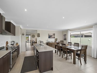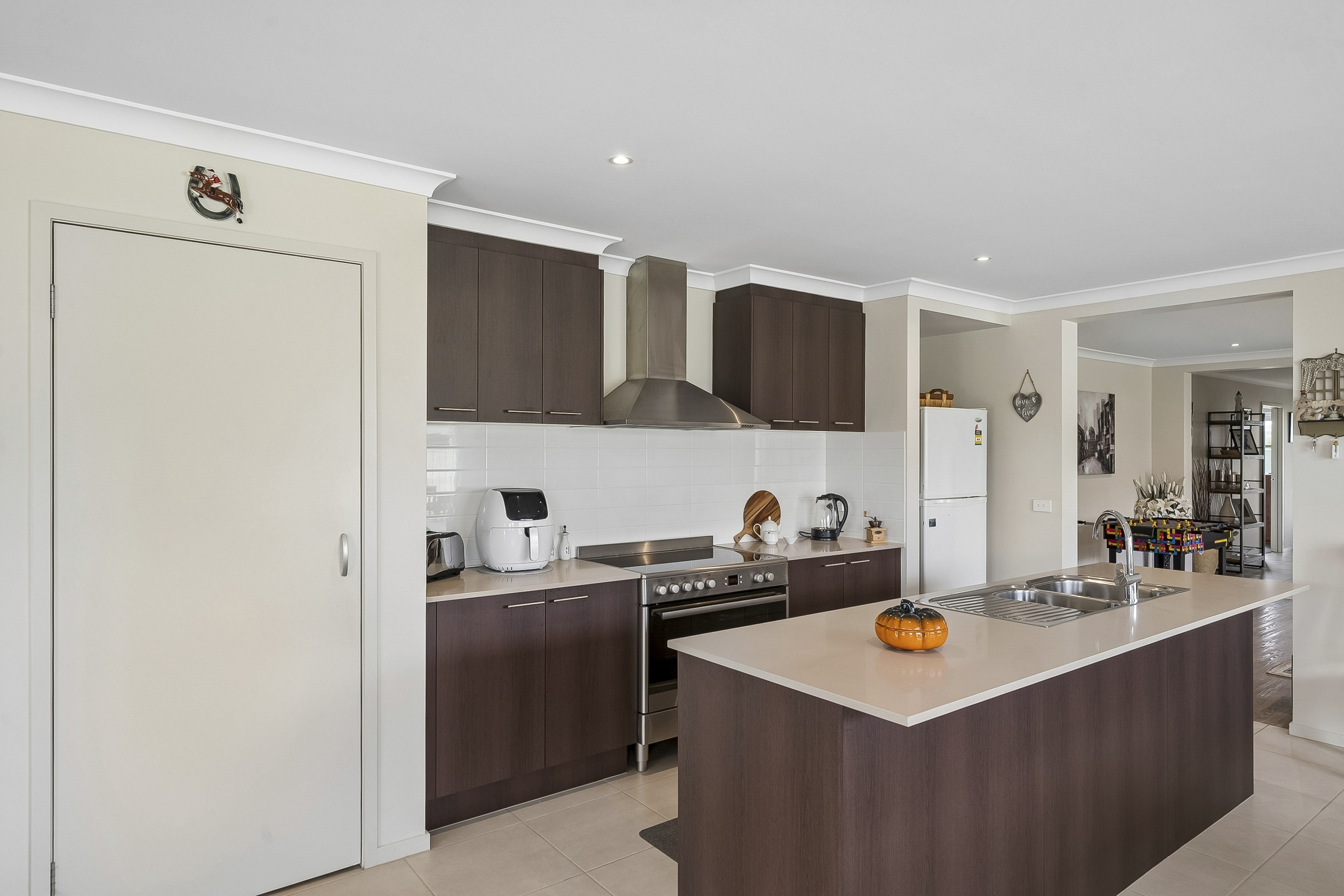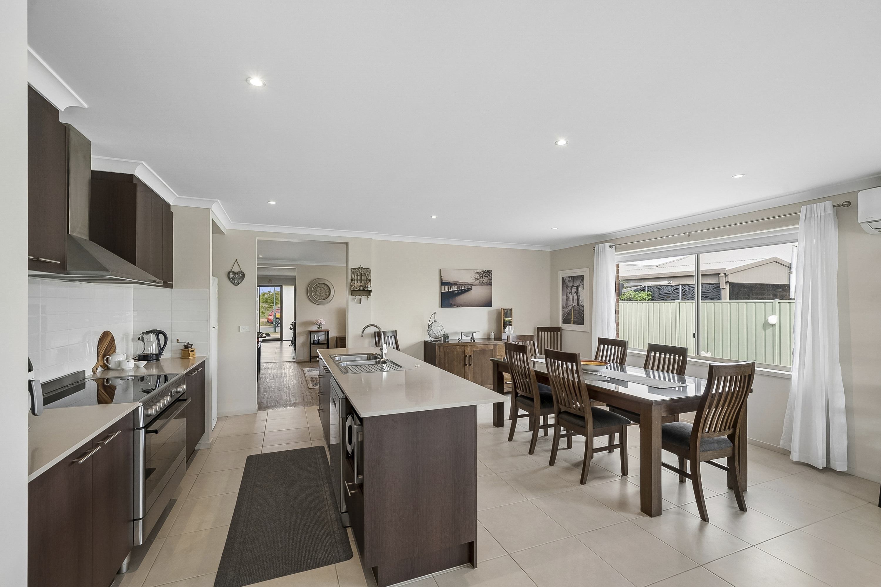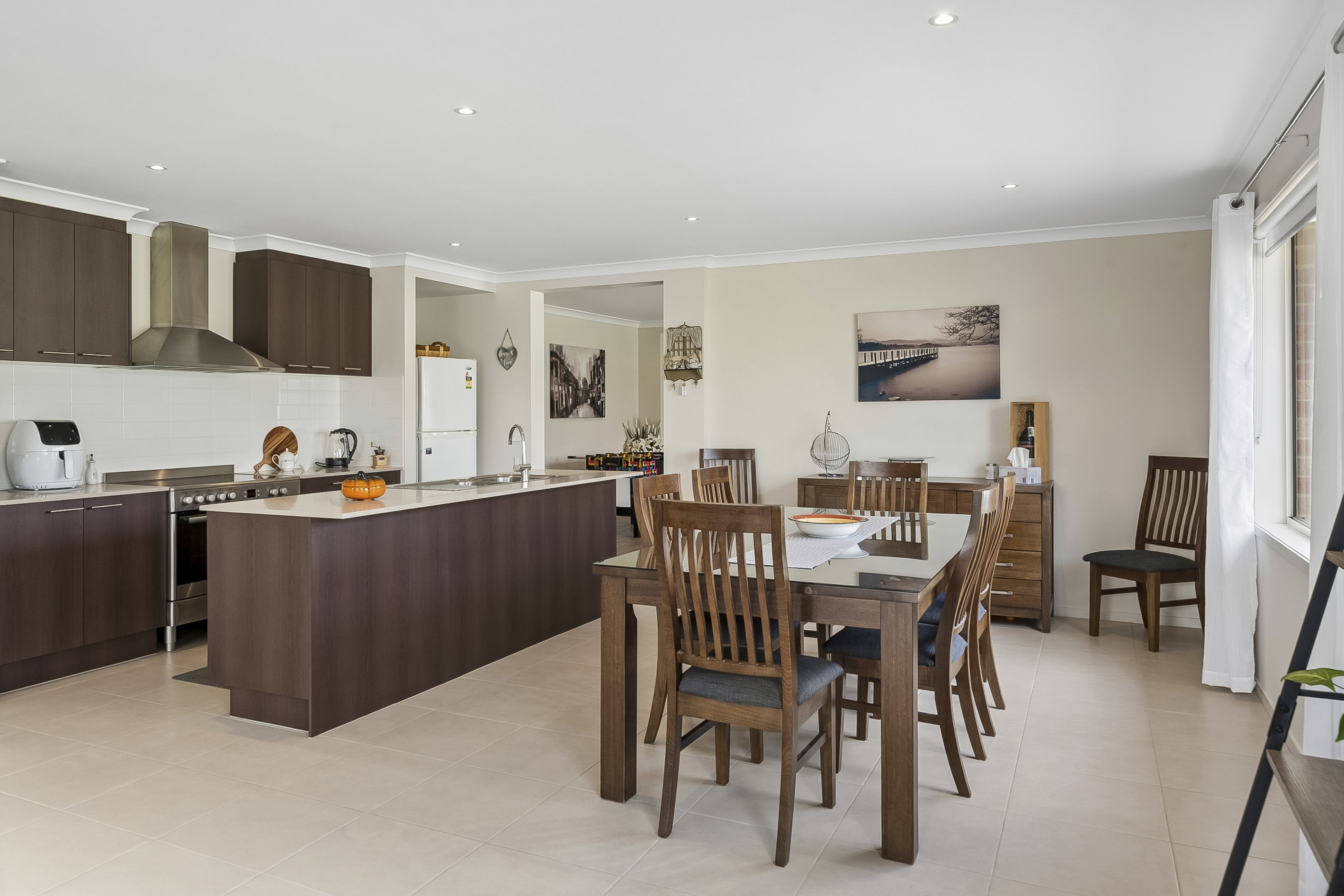 At the heart of the home is the light-filled open-plan kitchen, dining, and family area—perfect for both relaxing and entertaining. The kitchen will impress home cooks with its large gas cooktop, electric oven, dishwasher, ample bench space, and excellent storage. A second living area provides additional flexibility for families needing extra space.