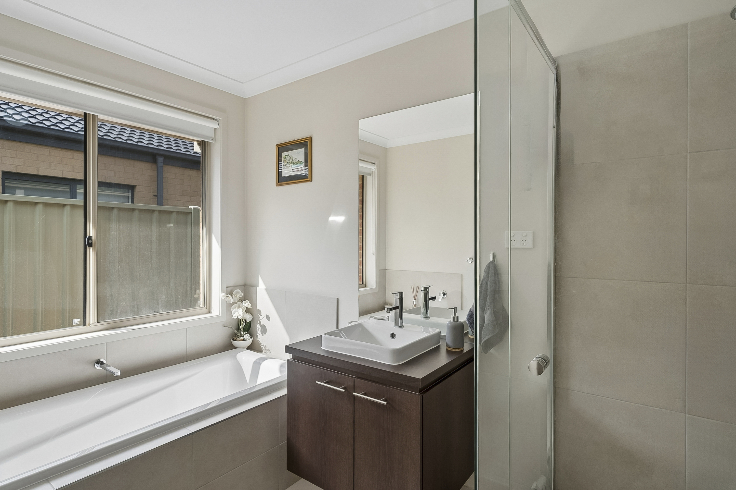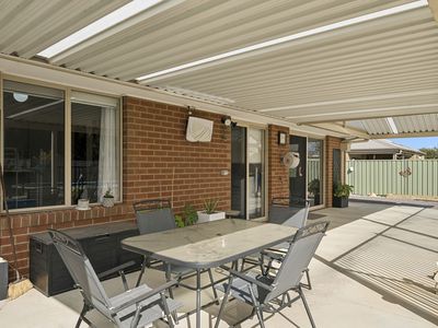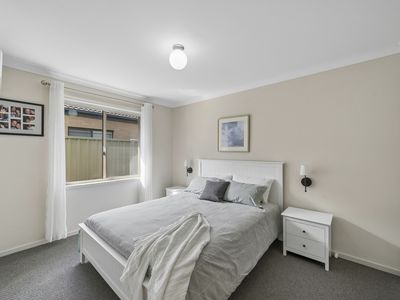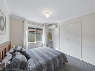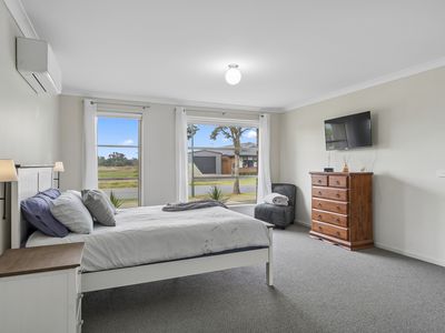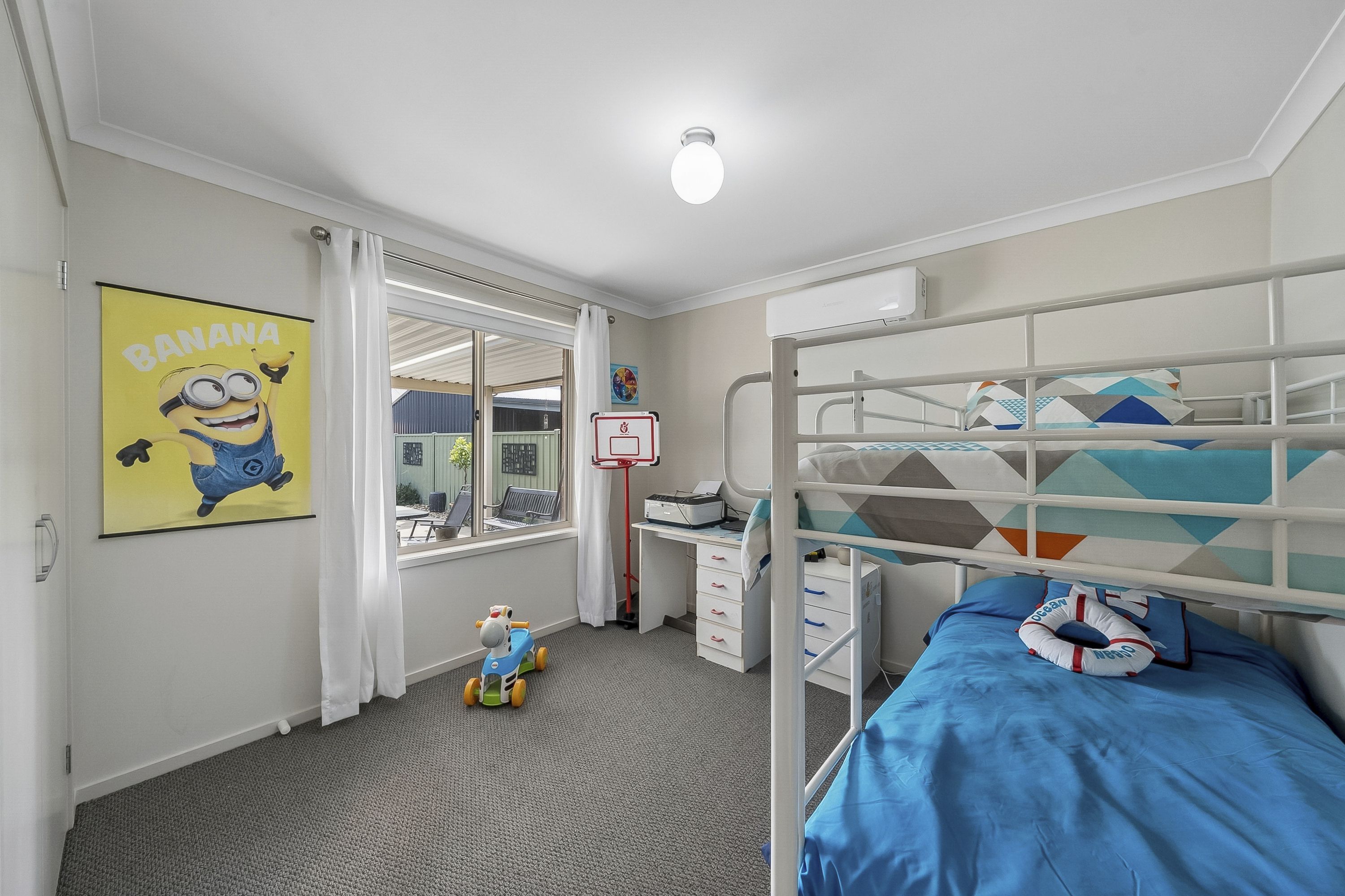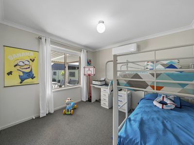 The generous master suite offers a private retreat, complete with new carpet, blinds and sheer curtains, a split system for year-round comfort, a spacious walk-in robe, and a well-appointed ensuite.