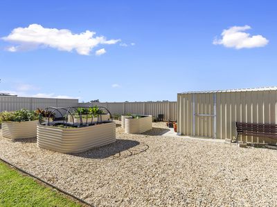Set on a large 973m2 block of land, established veggie garden beds (self-watering), side access to the yard (can drive car & trailer) and additional shedding to the rear of the property.