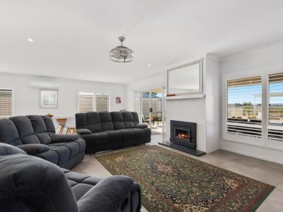 The lounge area will be cosy in winter with a wood fire surrounded by classy feature tiles and a central r/c split system (further provisions to the bedrooms).